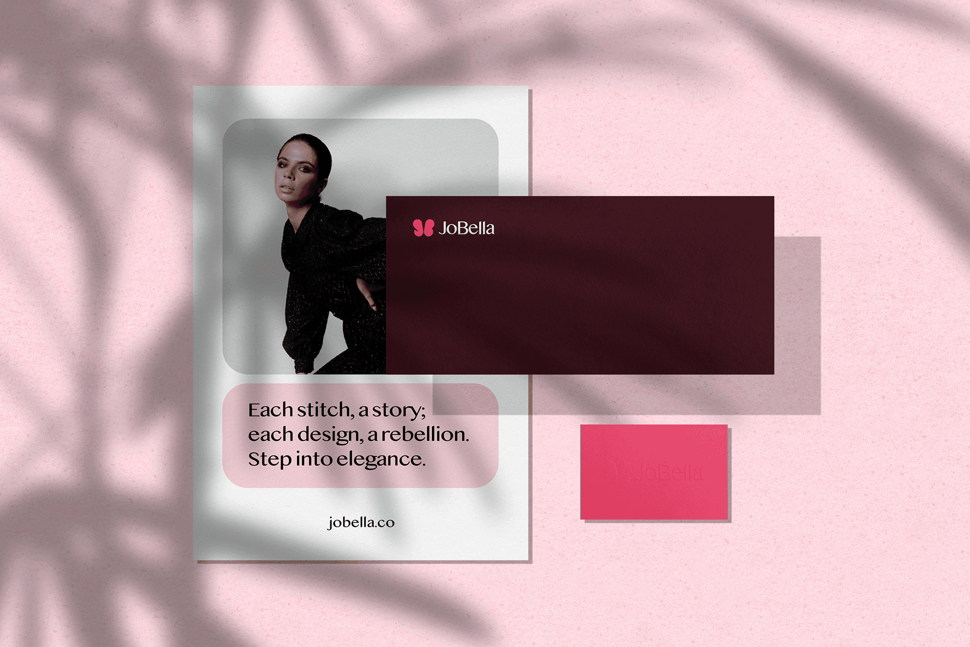 To achieve this, I embraced simplicity, refinement, and gentleness in our branding. The logo seamlessly intertwines the initials "J" and "B" with a butterfly motif, symbolizing our commitment to enhancing our audience's appearance and well-being. Opting for a sleek sans-serif font for the logotype, I maintained a minimalist approach to our brand identity. Additionally, I curated a color palette featuring shades of pink, signifying femininity, sophistication, and timeless allure, thereby infusing our brand with an air of elegance and allure.